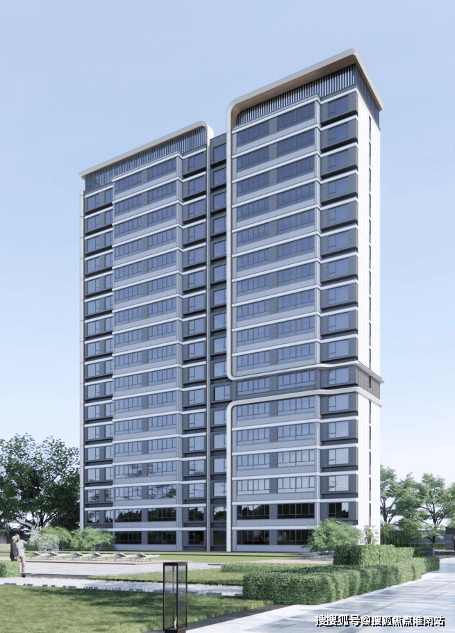 外立面上:建筑主立面以公建品质的现代型材构造把控立面细节,以修长挺拔的建筑形态,勾勒出轻盈灵动的几何立体质感。