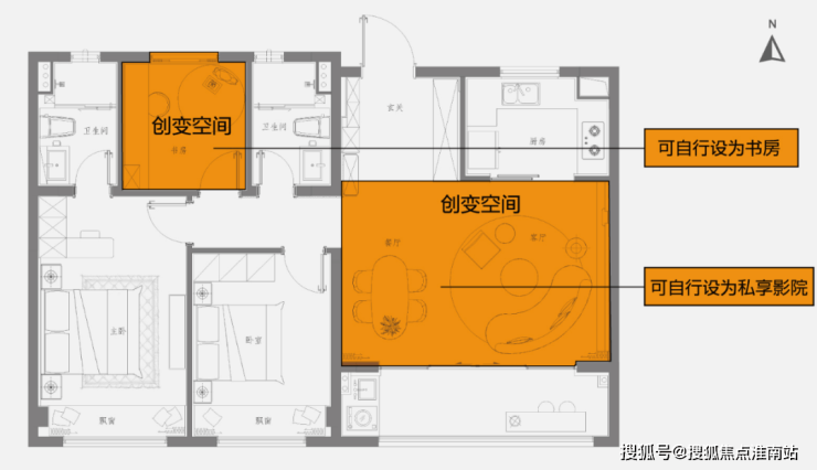 北侧多一个灵动空间,可以改造成书房、游戏室,也能为二孩的到来,提前准备。
