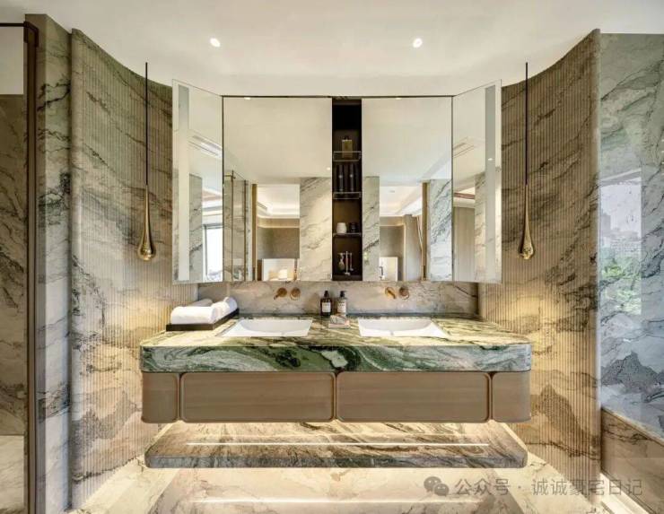 万科中興傲舍凝聚72种高端豪宅都难得一见的奢材,如皇家白奢石、Prada绿皮革面奢石、砖纹定制铝板等等,每一处细节都透露出精致与考究。
