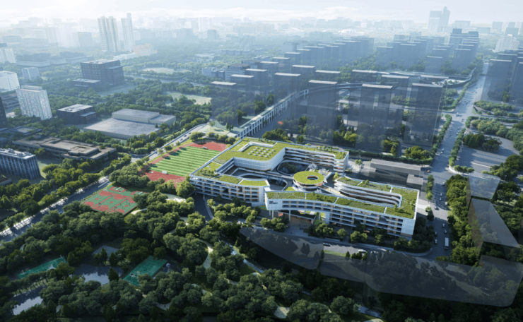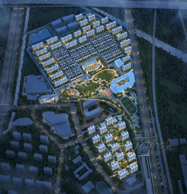 整个项目由两宗地块组成,占地约425亩,总建筑面积约48万㎡。是一座涵盖约4.5万㎡公园、幼儿园、九年一贯制学校、文体中心、邻里中心等复合业态的超大“公园城市”。