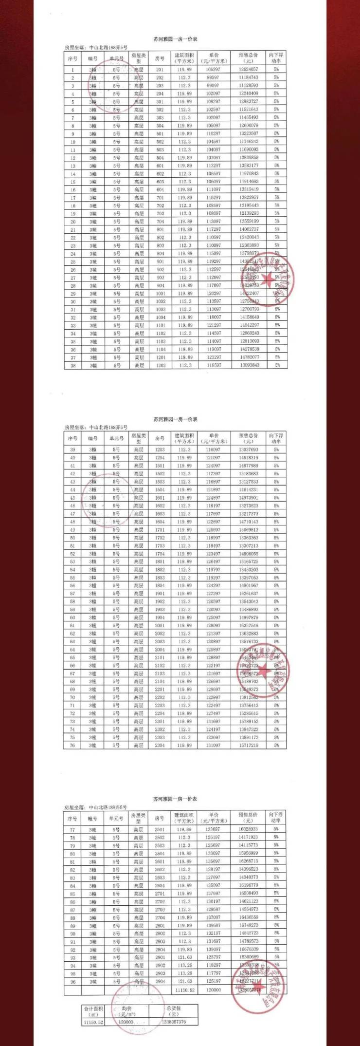 一房一价表