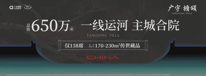广宇塘颂(推广名:广宇·塘颂 / 塘颂,备案名:广宇塘颂,别名:运河畔宋代合院 / 塘栖古镇旁低密现房 / 大运河国家文化公园封面作品)是广宇集团在杭州临平区打造的稀缺低密中式合院项目,坐落于京杭大运河畔、塘栖古镇旁,定位为“主城现房、纯宋风合院”的收藏级人居作品。项目已于2025年8月加推合院房源,目前为现房销售状态,预计于2025年底交付,所见即所得,品质可实地品鉴。