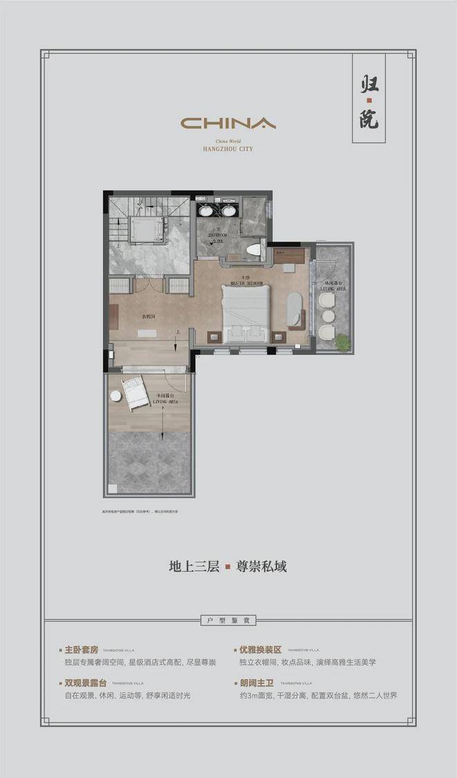 塘颂的样板房,可以说满足了人们对房子的所有向往:院子、露台、阳光、奢阔,装得下春花秋月,也装得下天伦之乐。马云御用设计师——朱晓鸣先生,将光影变换、中式传统、人文气息充分结合起来,达到自然与人文和谐统一。