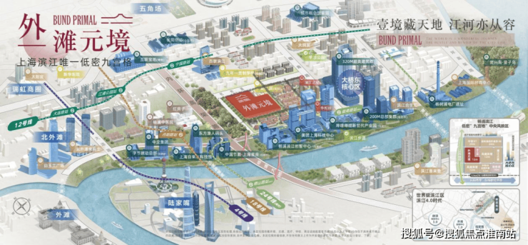 中建壹品·外滩元境择址世界科创滨江九宫格板块,循着上海“一江一河”城市战略的宏大叙事脉络,精准落子“东外滩”与杨浦“世界科创滨江”交汇的稀贵版图。