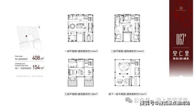地上建筑面积约408㎡户型,地下一层建筑面积约154㎡。