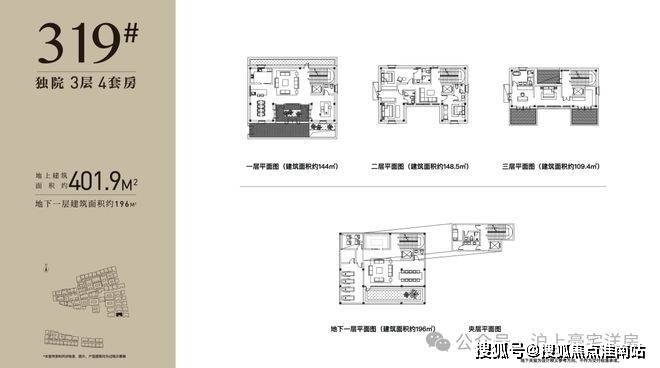 地上建筑面积约340㎡户型,地下一层建筑面积约165㎡。