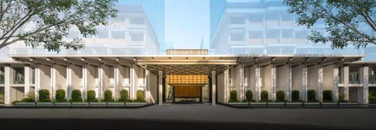 先看项目大门,我们会震撼于超200米宽的酒店式门仪、最高约7米的尺度,惊艳于16根柱廊序列的典雅气质,心仪于紫金琉璃背景墙、玉石纹理的透光材质的浪漫神韵。
