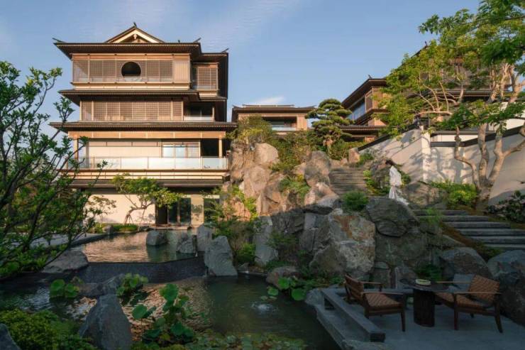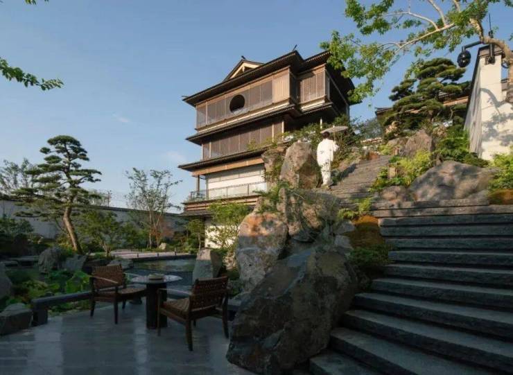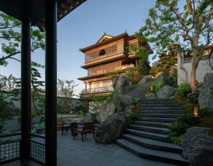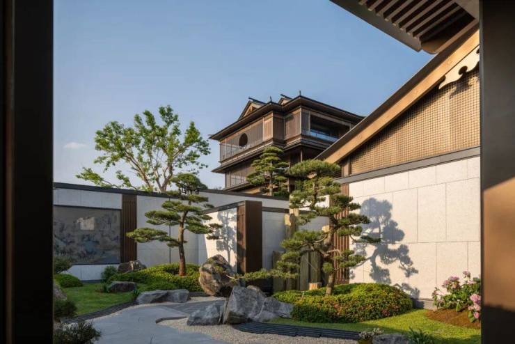 上层休憩,下层漫游,上层与下层之间能串联一起,室内与庭院之间能内外交融。宛若一个多向的场景分叙,首层空间以无界内外的方式充分发挥了庭院的价值,布局充满开放性和通透感。二层以上的空间则通过布置会客厅、茶室、宴会厅等空间场域,从而建立起一个上下贯通的空间语言系统。向上的建筑,是一个垂直山水;平面的庭院,是一个水平山水。搜建筑
