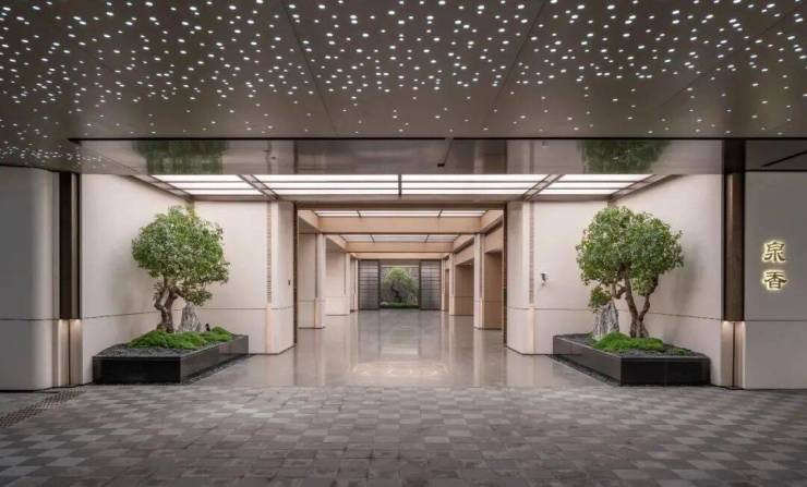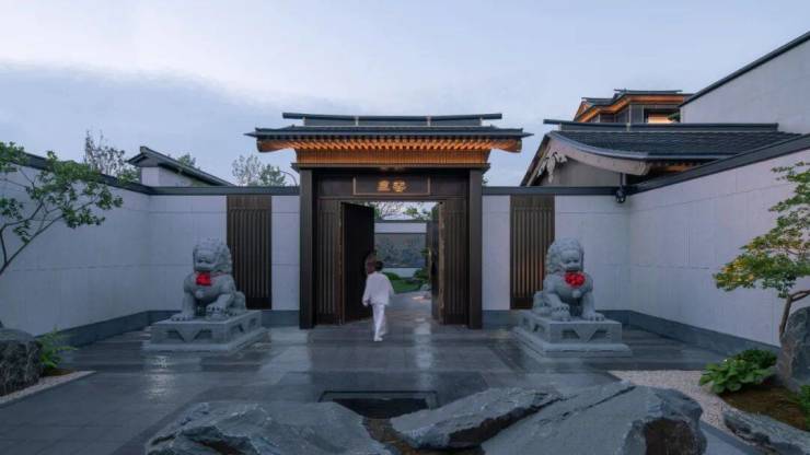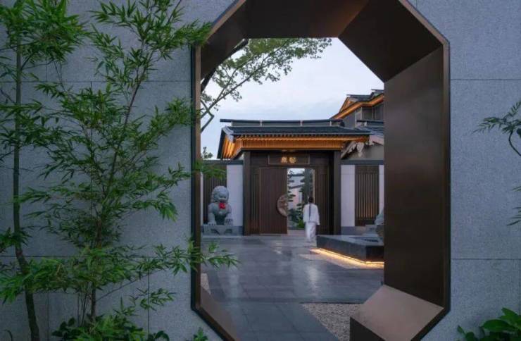 从整个动线布局来看,设计采用了经典的“巷门-院门-宅门”三进制院落格局,以江南院落再现东方传统礼序。从园区巷门开始层层递进,到一户一府的院门,再至入户宅门,表现出大户人家的归家气场,带来一种尊贵秩序的仪式感,也将中式生活的画卷次第展开。