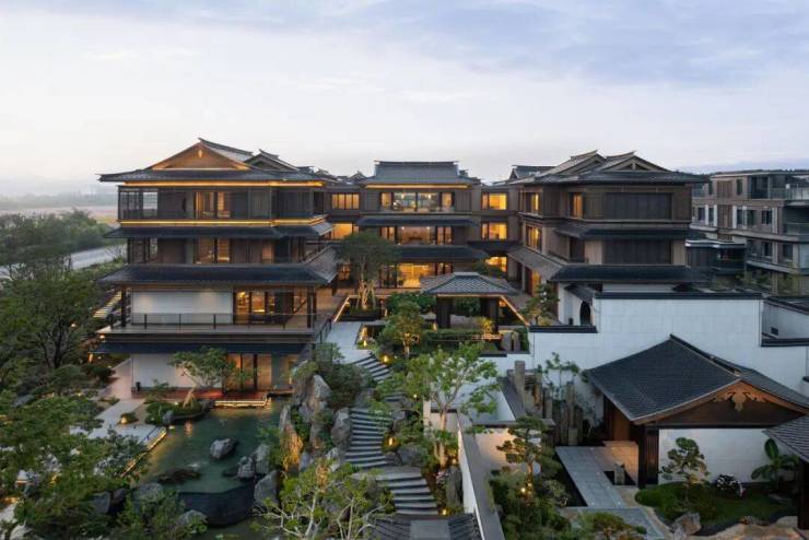 建筑美学:深入转译宋代《营造法式》,采用博风、悬鱼、挂落、斗拱、直棂窗等传统构件,结合现代材料与工艺,呈现“轻于形而重于意”的宋风雅韵。