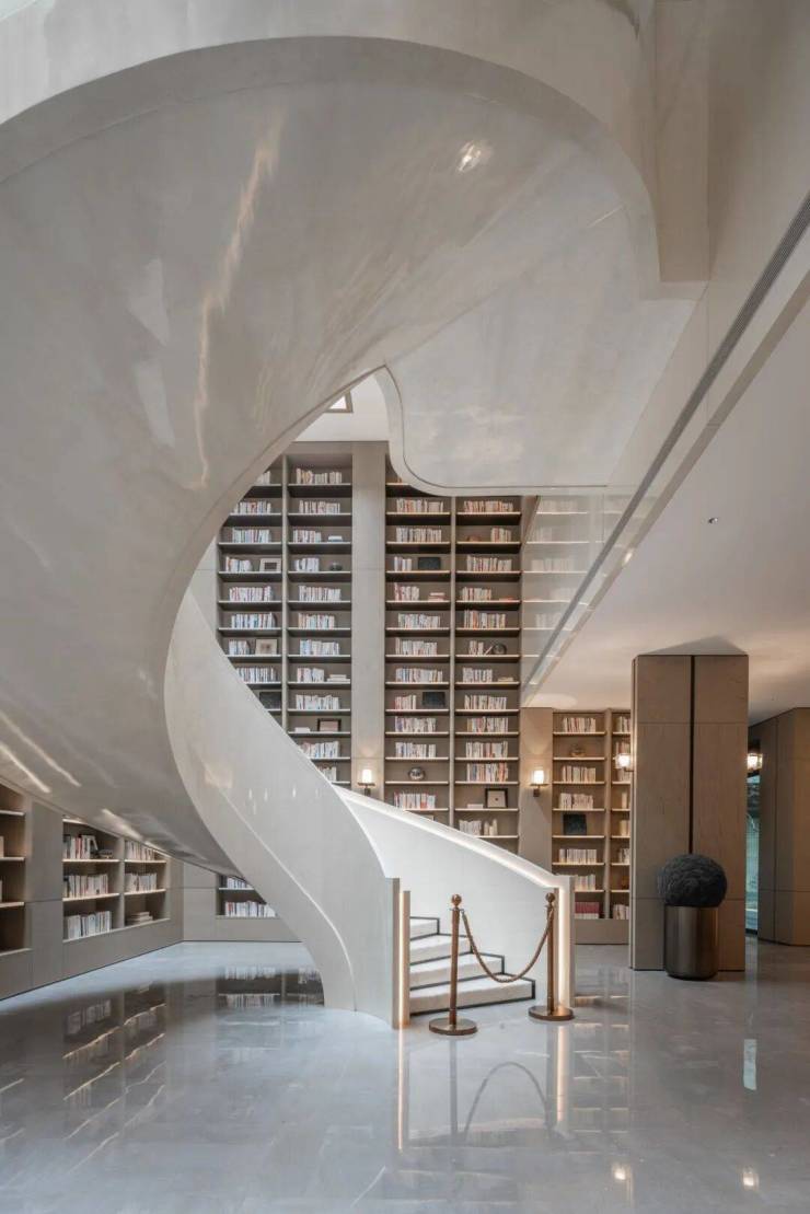 藉由此,设计以中国古典园林狮子林为原型,在22#“泉香”构筑出了一处回环曲折、层次深奥,以水为主题的“层叠游园”式官邸大宅,立体化呈现园林空间的曲直、疏密、幽旷,以期达到“游目足以骋怀”的效果。走入其中,三种递进景别层次:湘湖的群山大湖为远景,庭院飞瀑与巍峨建筑为中景,山水松石为近景。