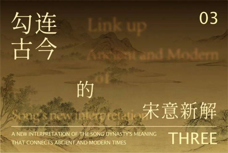 相较于唐朝规模宏大的建筑,宋朝建筑更偏向于精巧秀丽。这一特点具体表现在建筑上,即为屋顶起翘更大、屋身层层飞檐、基座漂浮架空。设计通过对传统的宋代建筑进行深入的研究,将布局形制、比例尺度、装饰要素等进行现代性的转译,轻于形而重于意。