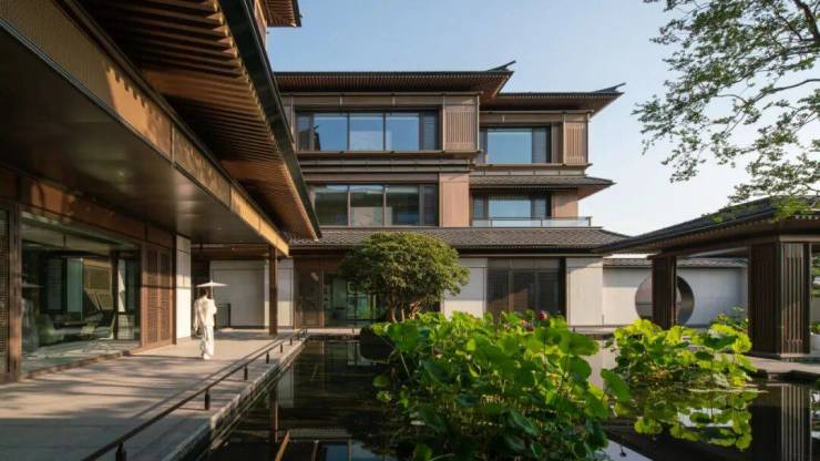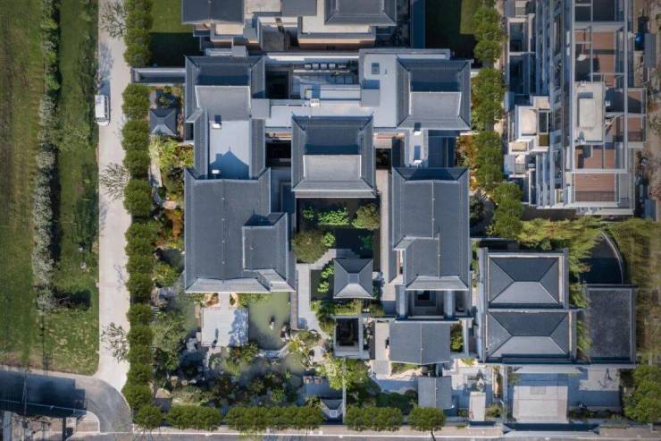 因此,当面对保亿湘湖六庄每栋6065㎡-6676㎡不等的规划要求时,青墨建筑设计与业主保亿集团所希望看到的,除了项目能够以亿级“官邸大宅”的形态出现外,又叠加了在杭州山水文化与湘湖自然风景互构的基底上,塑造一个适应当代生活需求的“私家园囿”期许,从而使江南山水意象以园林形式从一种审美追求转移至物质可寻的状态。