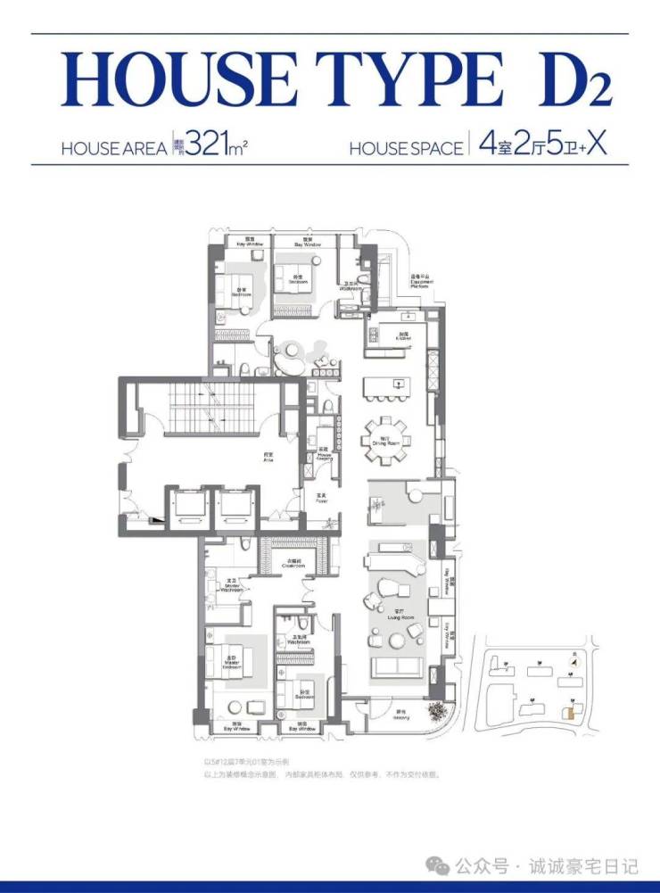 建面约251–320㎡:4–5房(“4+1”灵活空间设计)