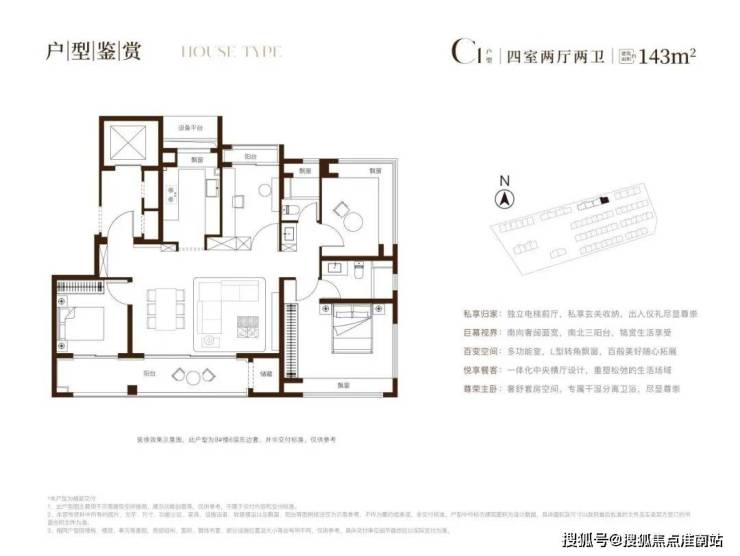 空间红利:空间效率与场景革命的“实用哲学”“926新规”红利在此转化为极致的实得率(约120㎡超86%,143㎡约92%),这仅是基础。更深层价值在于对户型空间的革新:如建面约143㎡户型的约6.4米南向大横厅、南向四开间及贯通式宽景阳台,实现了空间感与功能性的倍增。