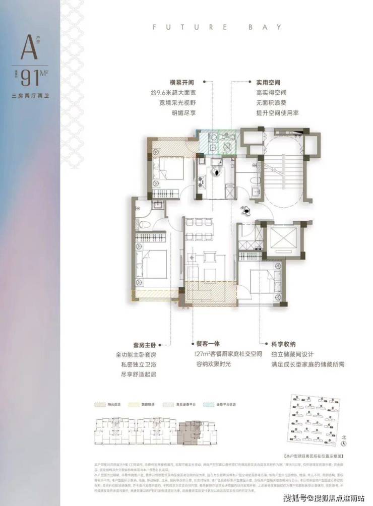 至于户型,小高层有建面约91-108-125-139-165方,5种不同面积段的设计。得房率最高达95%。