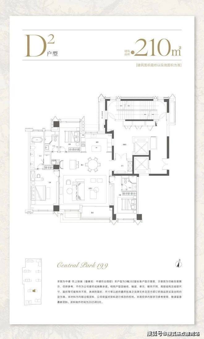 建面约210㎡,分为中间套与边套产品: