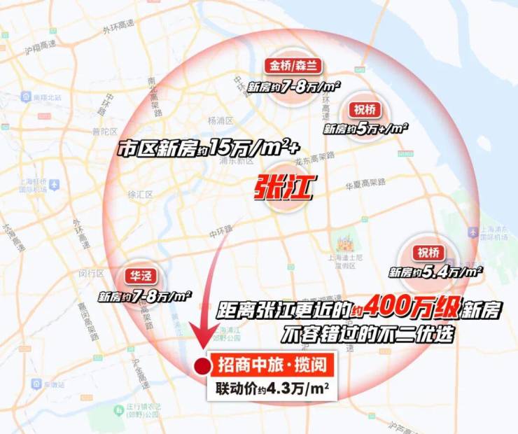 先来看地段,整个上海约400万级的楼市中:招商中旅·揽阅的地段价值,遥遥领先。
