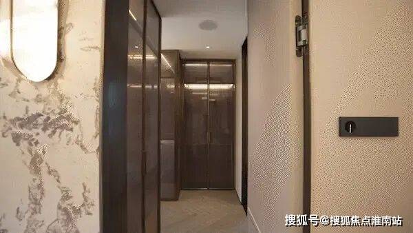 通过极具仪式感的归家门头,复杂的肌理铜板吊顶、宝格绿奢石门套与定制化蚀刻纹样,通过视觉、触觉的不同感官感受,完成了归家的身份转换。
