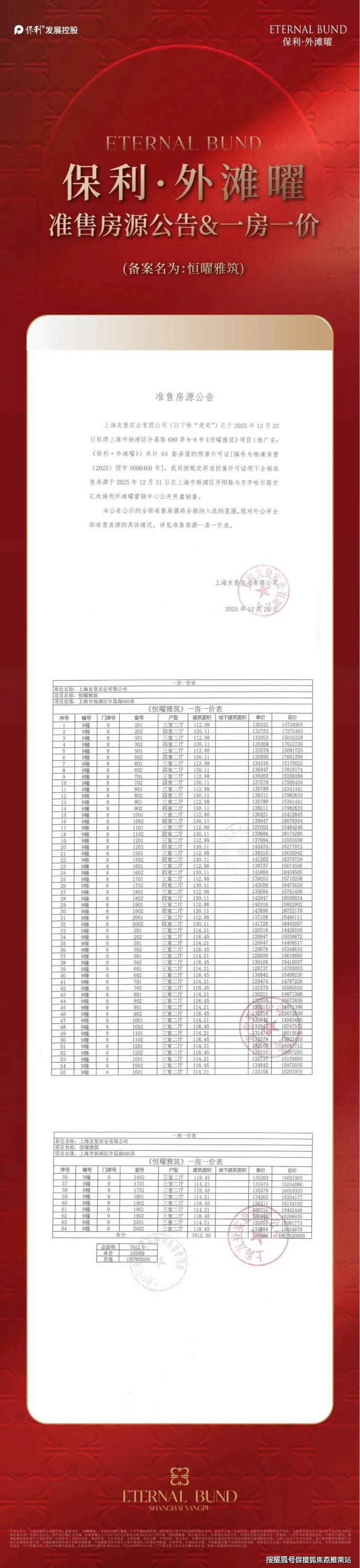 【保利外滩曜】一房一价表