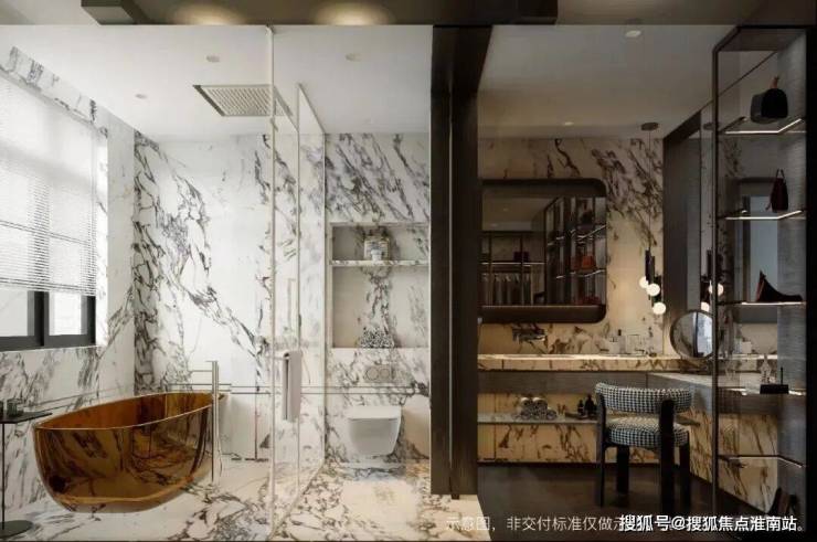 主卫可同时容纳浴缸与双台盆,