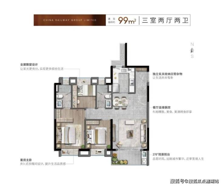 超高得房率是基础,更妙的是主卧套房设计,终于告别“衣柜堵门”的狭促感,私密性和舒适感一步到位;多处灵动的飘窗设计绝非摆设,它可以是你的小小阅读室、是迷你的花园、是猫咪晒太阳的专属领地,是你任何想要打造的个性化小空间......