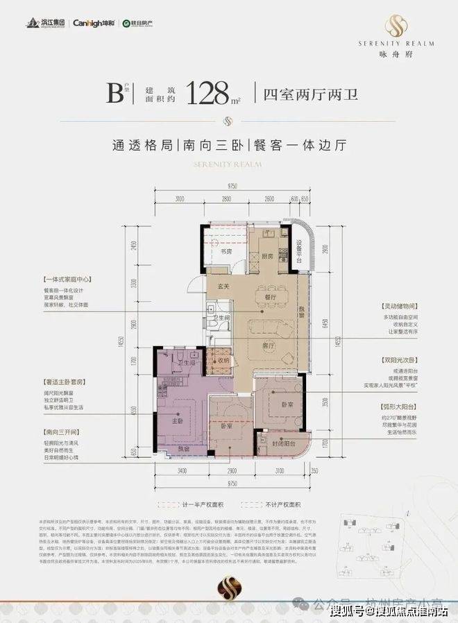 核心标签:南向四开间+阳光双套房+270°弧形飘窗
