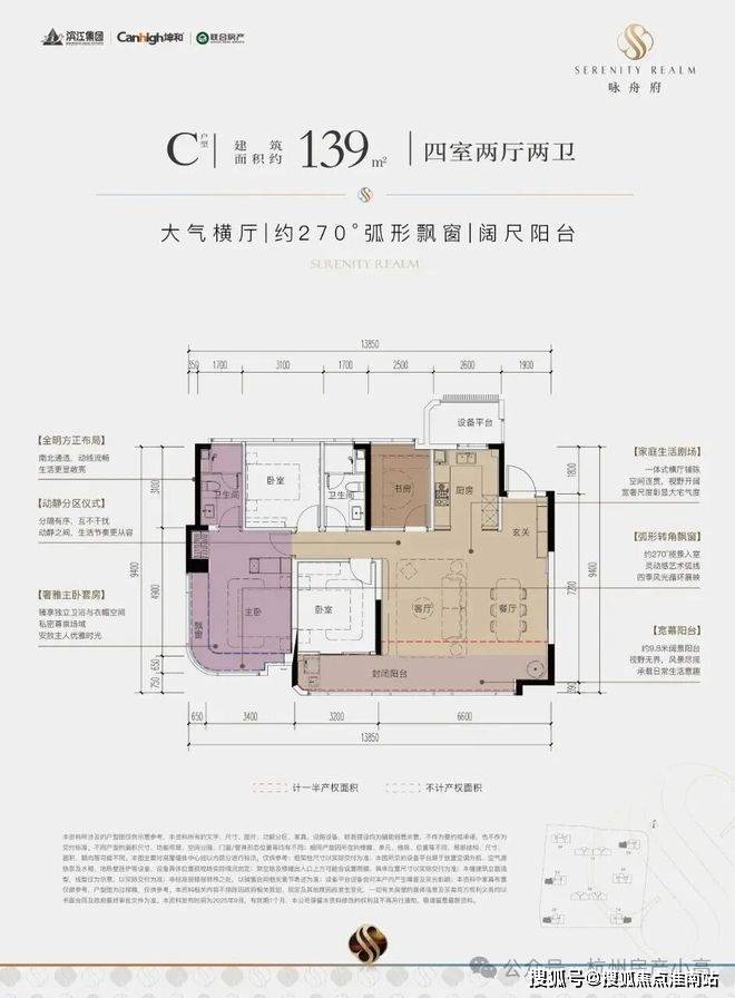 核心标签:大气横厅+270°弧形飘窗+阔尺阳台