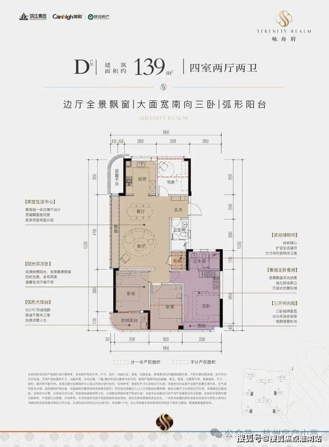 核心标签:边厅全景飘窗+南向三卧+弧形阳台