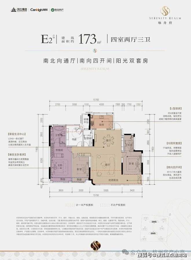 采光拉满:南向四开间超15.7米,双套房均带飘窗,阳光“追着人走”;