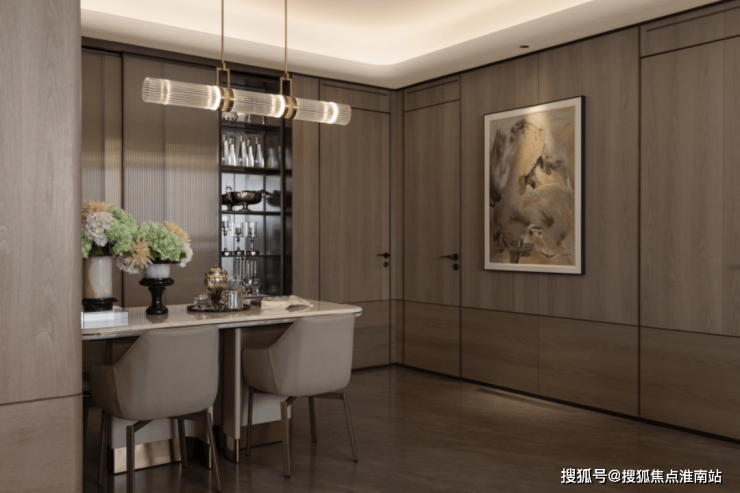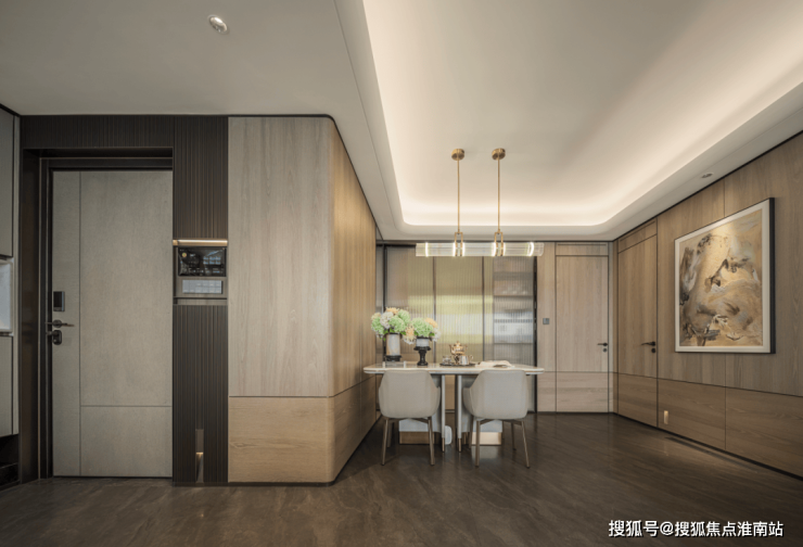 其一, 室内没有门与墙的生硬拼凑感,而是通过大量木饰面、隐藏门等细节,形成统一的设计语言,色彩与材质搭配协调统一,尽显整体美感。