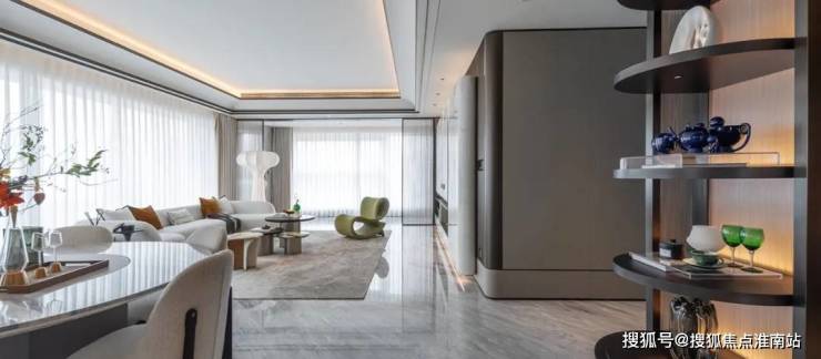 在示范区,挑选了琚宾设计的WAVE1960样板房,来感受一下大师以ART DECO的对称、几何美学,构建起的摩登艺术空间。