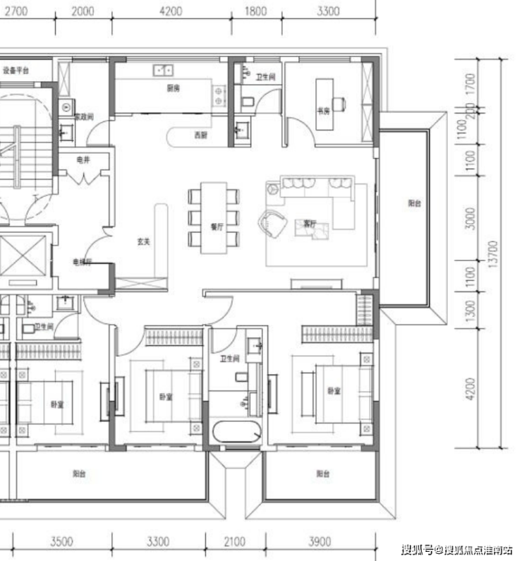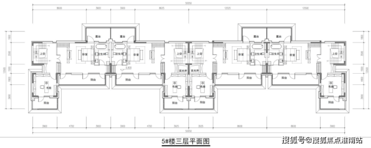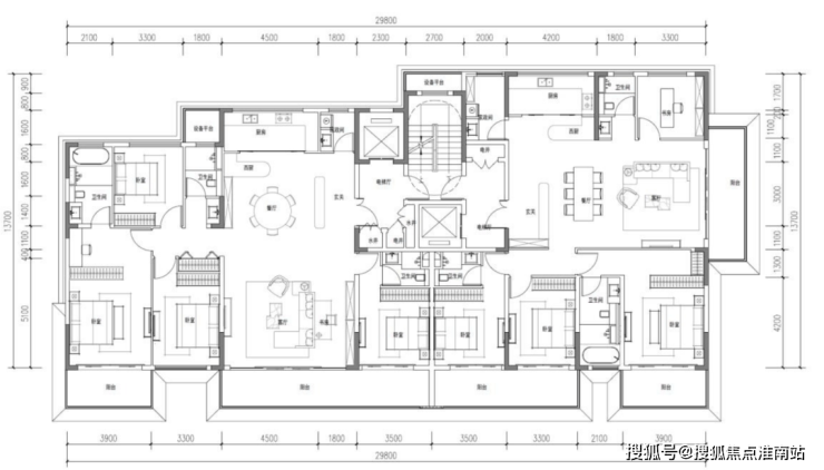 7#洋房标准层平面图如下:同步曝光2个户型,2梯2户。