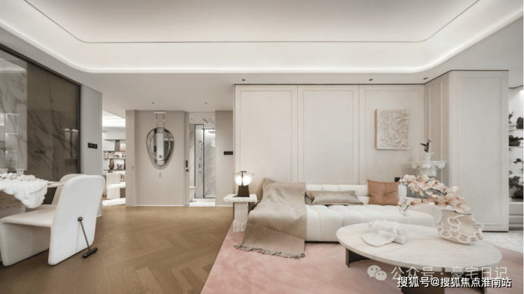 104㎡样板宛若一枚稀世的珍珠,以「垂直生活体里的先锋私邸」为定位,精准击中城市新贵人群对「即兴生活」与「舒适居住」的多元需求。