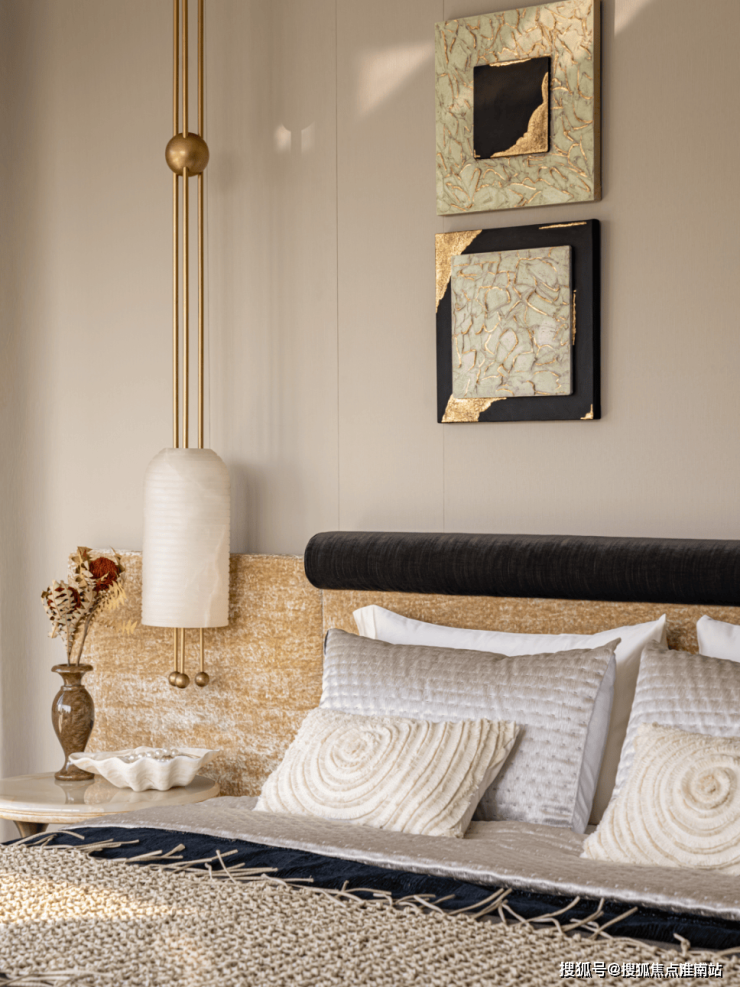 在布局上,家具之间形成松弛随性的排布,随时“邀请人们”静驻而坐,梳妆台未必是紧贴墙面的规整堆砌,正如这般,在背景柜前的一桌二椅,闲适之态便可托举体验.