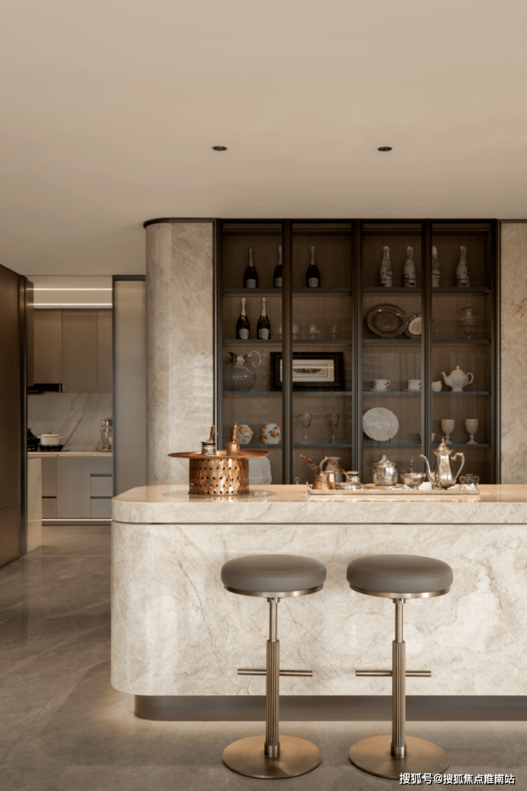 大理石地面回应当代美学中的轻盈与高级,这处区域讲求从容的仪式感,生活于其中是渐进而流动的.
