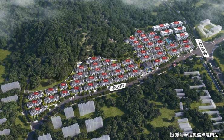 从空中俯视,整个小区院落错落有致,翩然伏于青山绿树间。