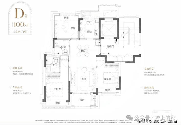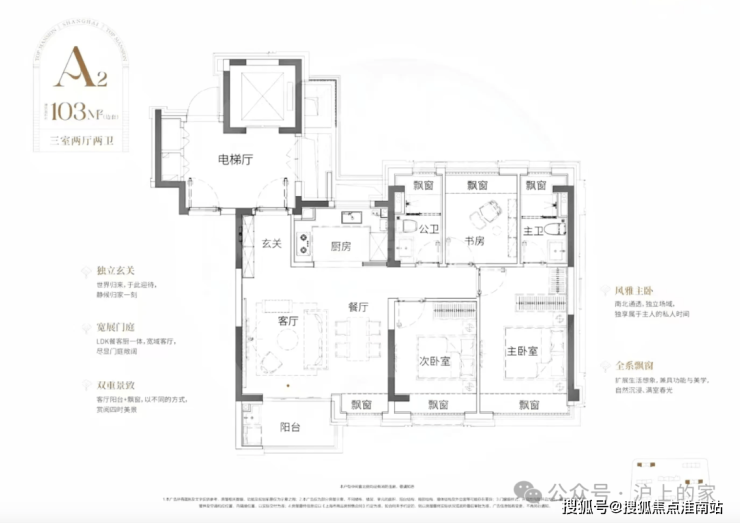 比起市面上普遍的三开间朝南动静分区户型,该户型至少有3大爆点: