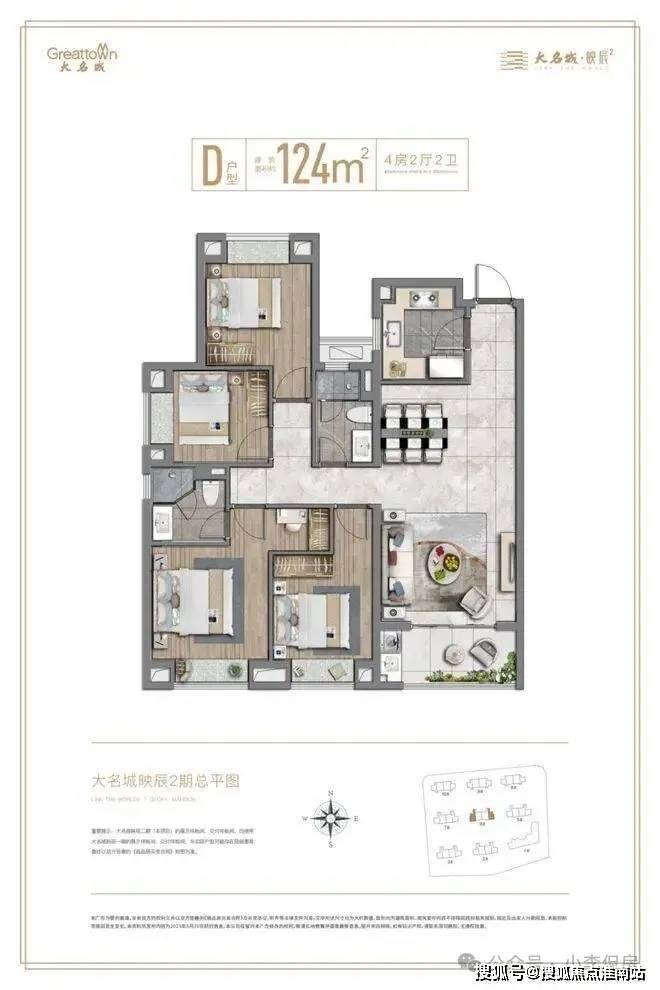 映辰户型种类很丰富,建面约77-123㎡多样户型,选择面更广;