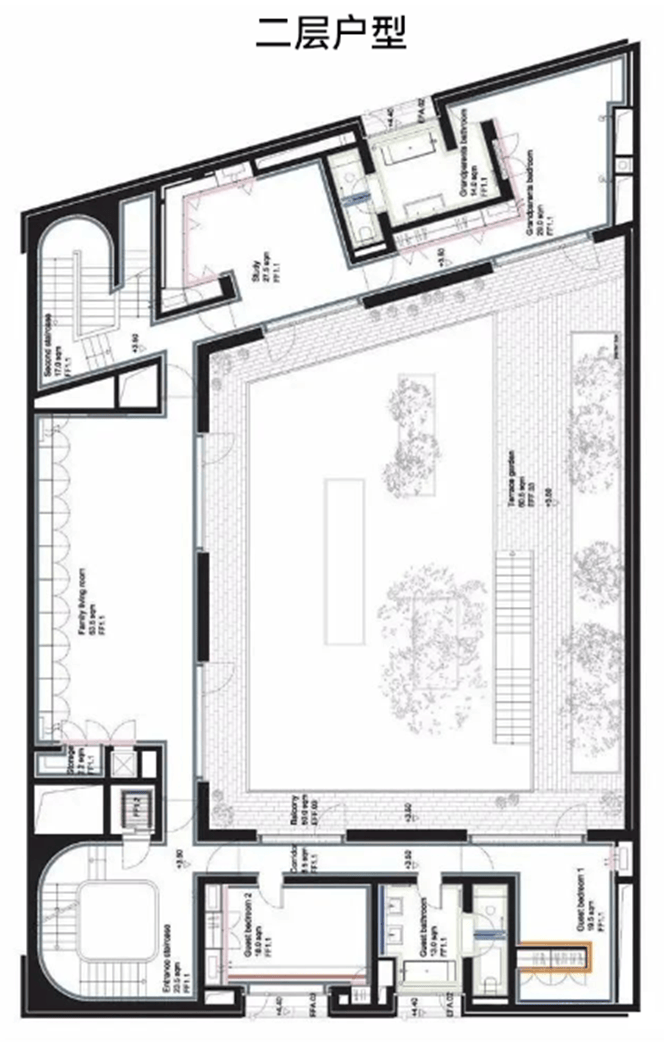 合院的理念是通过围墙来保证对外的私密性,而在内部则是通过共享庭院的中庭来营造一个开放的居住氛围,这与传统的独栋别墅正好相反。这里没有什么豪宅的边界感,也没有南向大面宽,南向采光等相关的讲究。