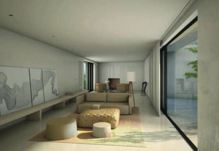 大卫·奇普菲尔德在这个西郊的这个项目上,划时代采用了中国传统的合院形式,但又注入了设计师一概的现代性冷淡风格。合院的理念就是通过围墙来保证对外的私密性,而在内部则是通过共享庭院的中庭来营造一个开放的居住氛围,这与传统的独栋别墅的理念是完全两个方向。