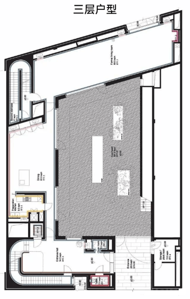 项目由12栋中西合璧的四合院组成,其中12号是楼王,13号是物业管理用房。11栋可售房源的面积段约为1000㎡-1500㎡,其中4栋为精装修交付,7栋为毛坯交付。