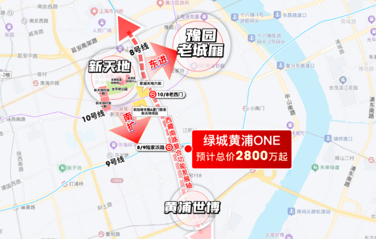 东进与豫园老城厢相连,南扩与打浦桥世博园衔接,打造为一个“大新天地”,几个片区左右相连,当中不再有断裂,联合构成整个黄浦中部板块。