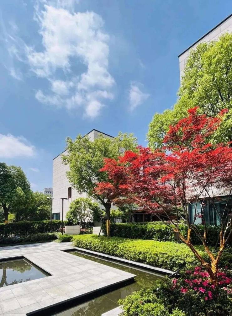 在园区细节上,更以水的点线面完成收集、净化、观赏、演化以及整体设计框架;用绿植的观赏、调节、隔离完做到完美的生态、季相、阵列;建筑上也是以水流+磐石+纹理将社区绿心贯彻到底,营造出绿色、生态的精品空间场所。