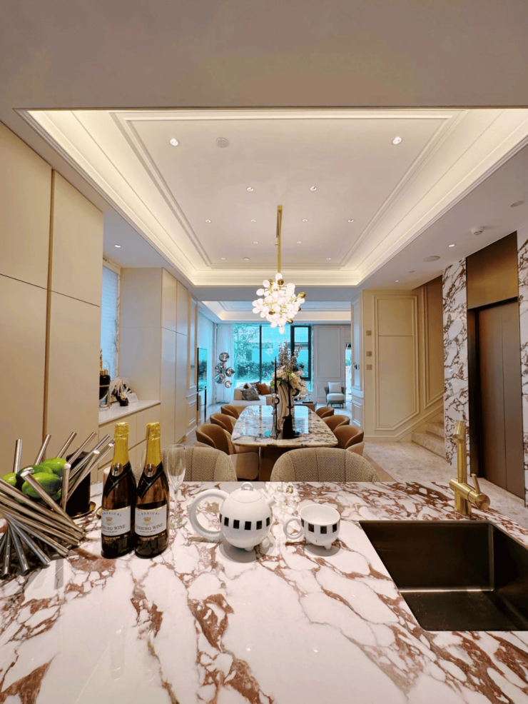 项目拥有真正的豪宅尺度,墅级层高满满的舒适感:其中1层为3.9米层高,2层为3.3米,3层为3.6米,局部为7.2米,地下室为5.8米。且有天有地、赠送花园&露台,其中花园面积约40㎡,足够办小型派对&休闲娱乐,且车位充足(车位比1:2)。