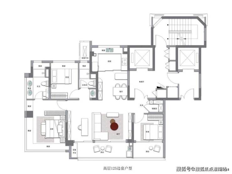 |效果图 产品解析01:约125-139平全能户型 3+1灵动空间 ◎ 类一梯一户——电梯厅独立入户 尊贵归家 拓展空间 ◎ 宽绰采光面——约13.2-15.2米朝南三面宽 极致采光 ◎ LDKB一体化——动线无浪费 高空间利用率 ◎ 全景主卧套房——270°转角无柱飘窗(边户) 大尺度观景 ◎ 高拓展空间——三阳台、多飘窗设计 拓展多维场景