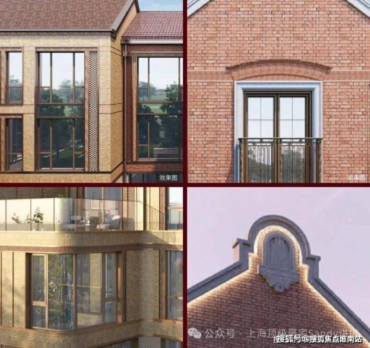 例如,在社区入户,目前已经完美呈现出来的,有强烈视觉冲击的立面大量的红砖、红洞石及大面积的落地弧形玻璃搭配的相得益彰,整个门头既有厚重的历史感,又不失极简主义的现代美。