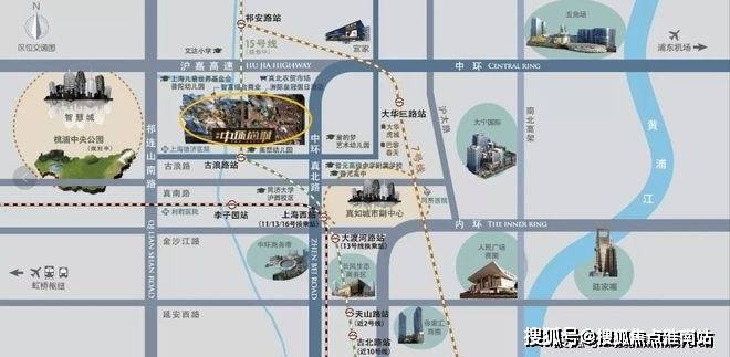 【中环名品公馆售楼处电话:400-9659-259】别名智富中环尚城,位于上海普陀区,隶属大真如板块,长三角入沪第一站,有上海“西大堂”之称。项目北面紧沿沪嘉高速、南至古浪路、西至张泾浜、东至真大路,距离上海铁路西站仅4公里。