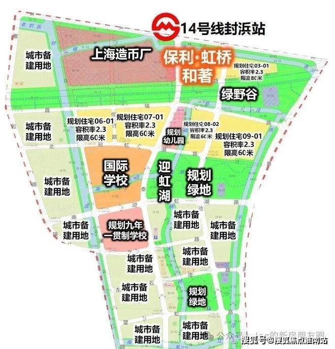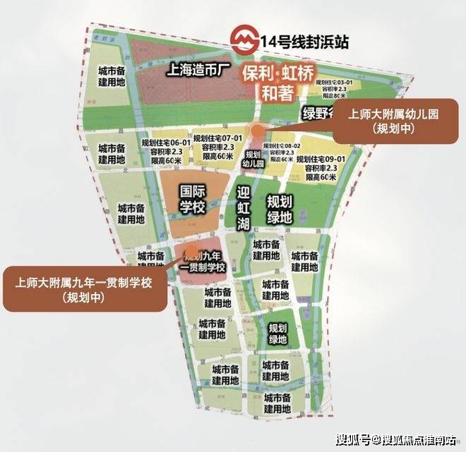 轨交:地块与地铁14号线终点站封浜站的直线距离不到500米,坐一站到乐秀路,未来可以换乘嘉闵线(在建),连接大虹桥、七宝、春申等板块。