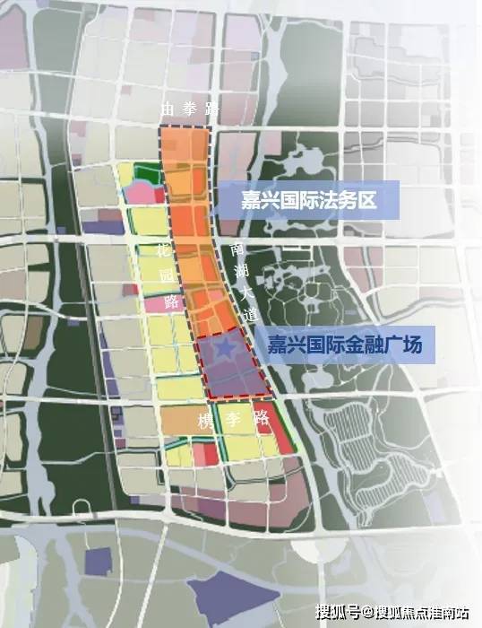 法务区主体区域位置,位于“南湖大道黄金中央商务带”城市单元,东至南湖大道、南至槜李路、西至花园路、北至由拳路,共0.9平方公里。